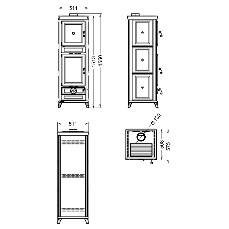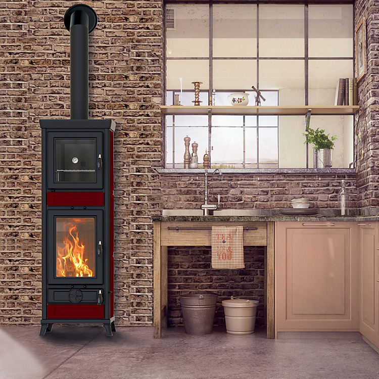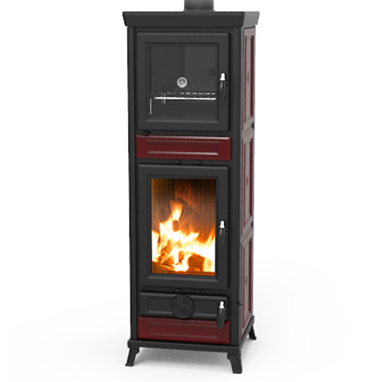 Kachle na drevo sú vyrobené z ocele a liatiny so špeciálnym výmenníkom tepla z nerezovej ocele.Spaľovacia komora je vyrobená z liatiny.Ovládacie prvky na reguláciu primárneho, sekundárneho a terciárneho vzduchu sú izolované.Dvere do ohniska a do rúry sú zo smaltovanej liatiny.Súčasťou kachlí je vyberací popolník.Panoramatická smaltovaná rúra (objem 34 l) s teplomerom.Vonkajší plášť kachlí je spracovaný z kvalitnej keramiky, liatinových plátov.Kachle sú vybavené manuálnym deflektorom, ktorý výrazne znižuje únikdymu do miestnosti pri prikladaní.