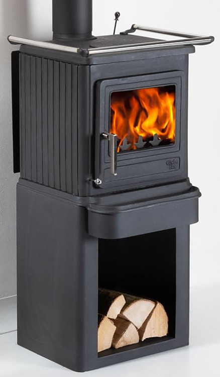Oceľová základňa ponúka dostatok miesta na palivové drevo.