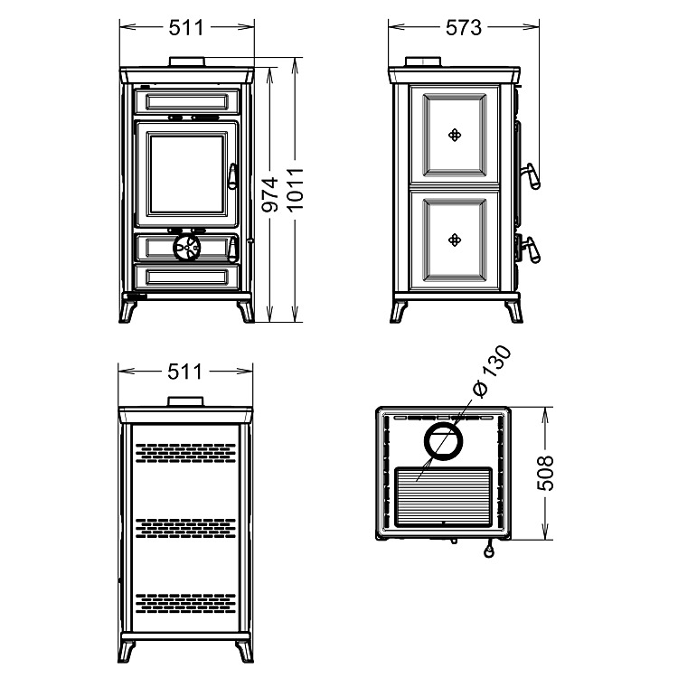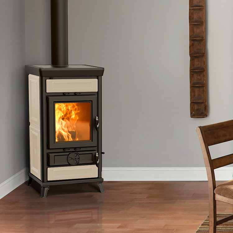 Kachle na drevo sú vyrobené z ocele a liatiny so špeciálnym výmenníkom tepla z nerezovej ocele.Spaľovacia komora je vyrobená z liatiny.Ovládacie prvky na reguláciu primárneho, sekundárneho a terciárneho vzduchu sú izolované.Smaltované liatinové dvere s odolným keramickým sklom na teploty až do 750 °C.Súčasťou kachlí je vyberací popolník.Vonkajší plášť kachlí je spracovaný z kvalitnej keramiky, liatinových plátov.Kachle sú vybavené manuálnym deflektorom, ktorý výrazne znižuje únik dymu do miestnosti pri prikladaní.
