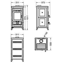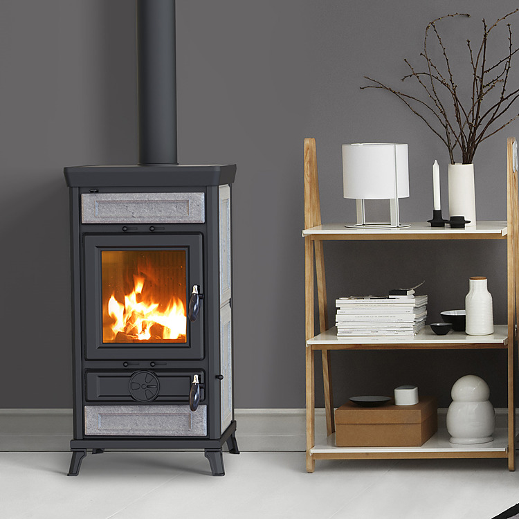 Kachle na drevo sú vyrobené z ocele a liatiny so špeciálnym výmenníkom tepla z nerezovej ocele.Spaľovacia komora je vyrobená z liatiny.Ovládacie prvky na reguláciu primárneho, sekundárneho a terciárneho vzduchu sú izolované.Smaltované liatinové dvere s odolným keramickým sklom na teploty až do 750 °C.Súčasťou kachlí je vyberací popolník.Vonkajší plášť kachlí je spracovaný z kvalitnej keramiky, liatinových plátov.Kachle sú vybavené manuálnym deflektorom, ktorý výrazne znižuje únik dymu do miestnosti pri prikladaní.