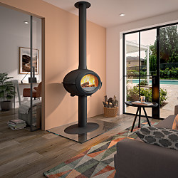 Z vrcholu svojho centrálneho liatinového stĺpa odhaľuje táto piecka na drevo svoj nesmierny talent. Všetky reflektory sú na tejto novej vykurovacej hviezde s neuveriteľným vzhľadom. Pozitívna energia a teplé vlny podnecujú jeho publikum. Aký Brio! Dizajn: B. Dequet. Vyobrazené výfukové potrubie nie je súčasťou dodávky kachlí.