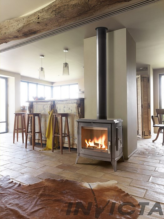 Retro štýl liatinových kachlí Invicta Sedan L dokonale zapadá do teplého a priateľského prostredia. Pokiaľ ide o pohodlie, je možné do nich nakladať z boku zo strany.Návrh: Jean-Philippe Dargenton.