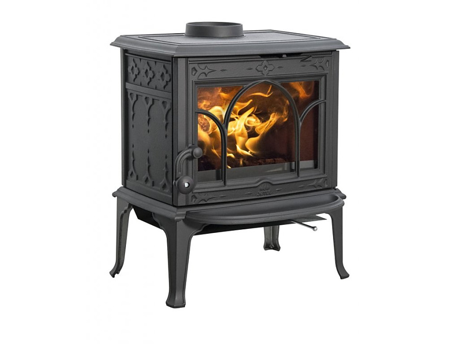 Veľké sklo dvierok, zdobené tradičným nórskym vzorom, umožňuje krásny pohľad na horiaci oheň. Kachle Jøtul F 100 vyrábame s lakovaným povrchom alebo bezúdržbovou smaltovanou úpravou.