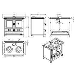 Sporák na drevo je vyrobený z ocele a liatiny so špeciálnym výmenníkom tepla z nerezovej ocele.Spaľovacia komora je vyrobená z liatiny.Ovládacie prvky na reguláciu primárneho, sekundárneho a terciárneho vzduchu sú izolované.Smaltované liatinové dvere s odolným keramickým sklom na teploty až do 750 °C.Súčasťou sporáka je vyberací popolník.Smaltovaná rúra (objem 43 l) s teplomerom.Čelné nerezové madlo (bočné madlá je možné dobjednať ako príslušenstvo).Vonkajší plášť sporáka je spracovaný z liatinových plátov a lakovanej ocele.