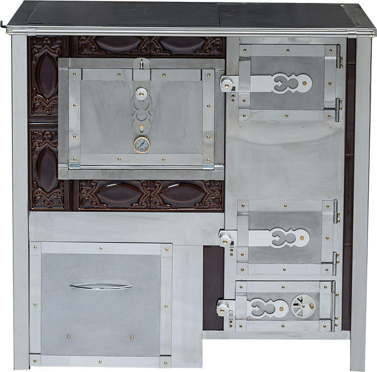 Prikladacie dvierka sú zdvojené: vnútorné sú liatinové so sklotextilným tesnením, vonkajšie z nehrdzavejúcej ocele. Rošt je liatinový, výklopný, ovládaný tiahlom. Pod roštom je priestor s popolníkom.