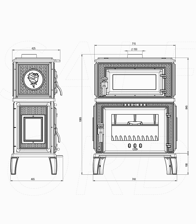 Model 2026, nový dizajn s plus bočnými dvierkami. Liatinové krbové kachle s integrovanou pieckou z vysokokvalitnej 100% sivej liatiny s dlhou životnosťou.