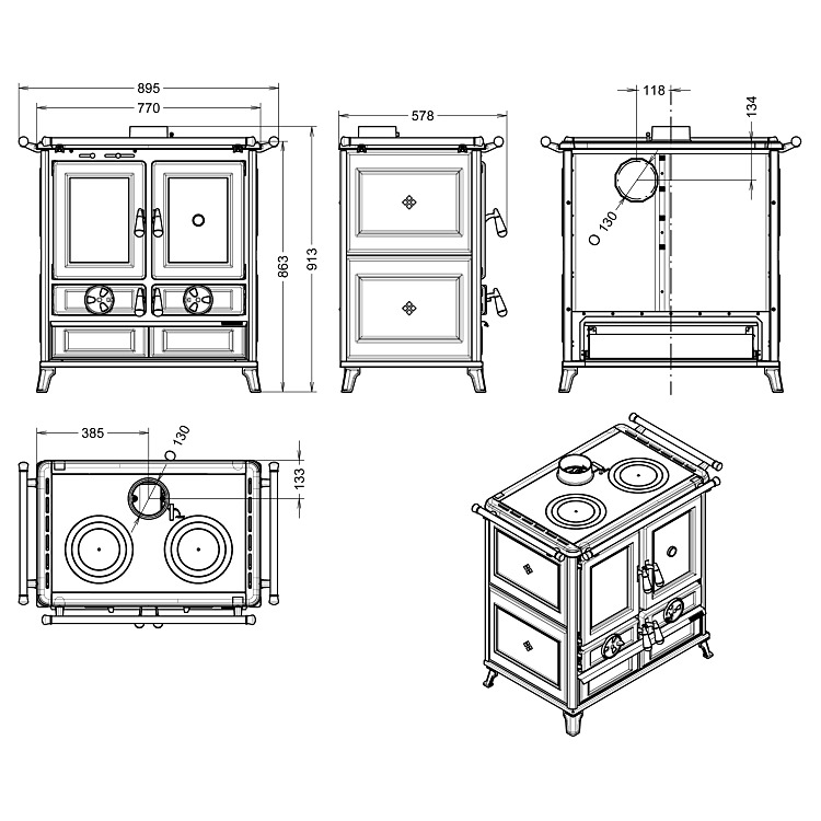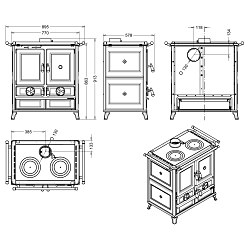 Sporák na drevo je vyrobený z ocele a liatiny so špeciálnym výmenníkom tepla z nerezovej ocele.Spaľovacia komora je vyrobená z liatiny.Ovládacie prvky na reguláciu primárneho, sekundárneho a terciárneho vzduchu sú izolované.Smaltované liatinové dvere s odolným keramickým sklom na teploty až do 750 °C.Súčasťou sporáka je vyberací popolník.Smaltovaná rúra s teplomerom.Čelné nerezové madlo (bočné madlá je možné dobjednať ako príslušenstvo).Vonkajší plášť sporáka je spracovaný z keramiky, liatinových plátov a lakovanej ocele.