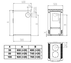 Pripojenie Ø 120 mm VxŠxH: 850/900/920 x 500 x 600 mm